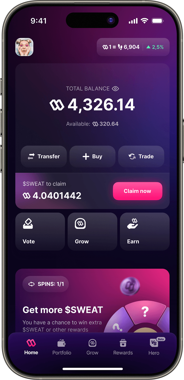 Manage your $SWEAT and crypto holdings in one seamless, multichain portfolio.
